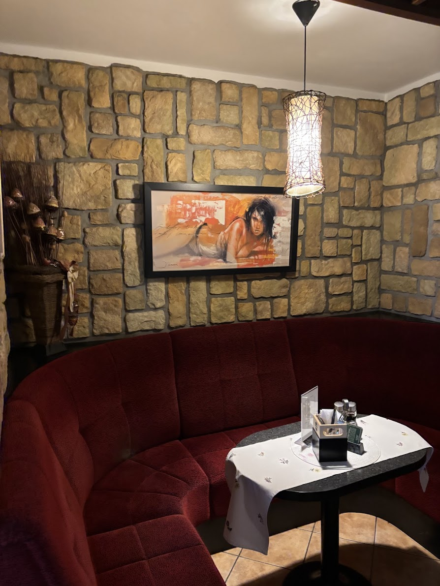 Vnitřek restaurace působí čistě, ale kombinace výzdoby z čínského tržiště a dekorací z devadesátkového nevěstince či striptýzového baru vysílá smíšené signály a člověk přemýšlí, co vše se tady za ta léta muselo dít.
